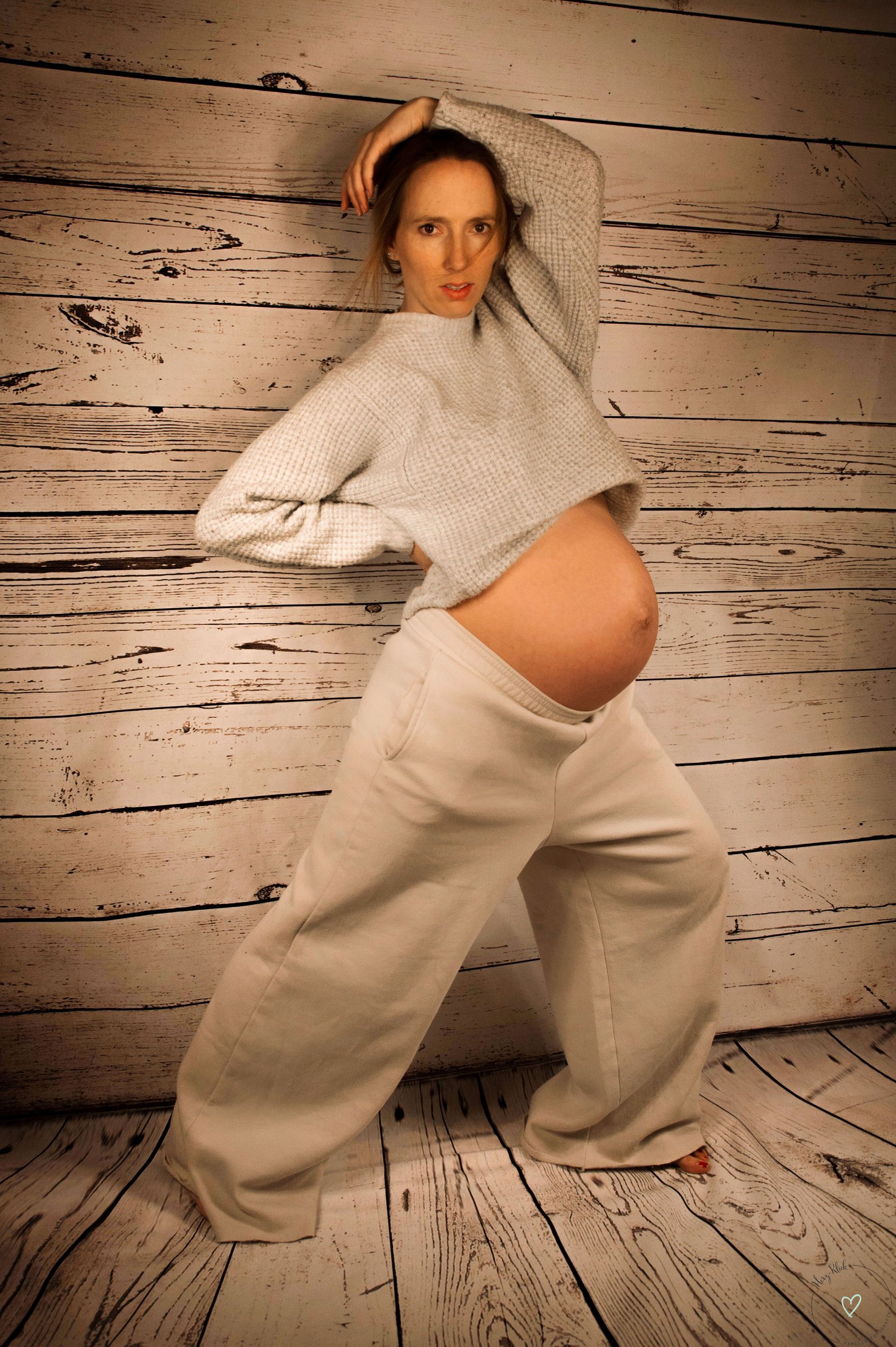 Die Babybauch-Bilder mache ich ungefähr in der 34. Schwangerschaftswoche.