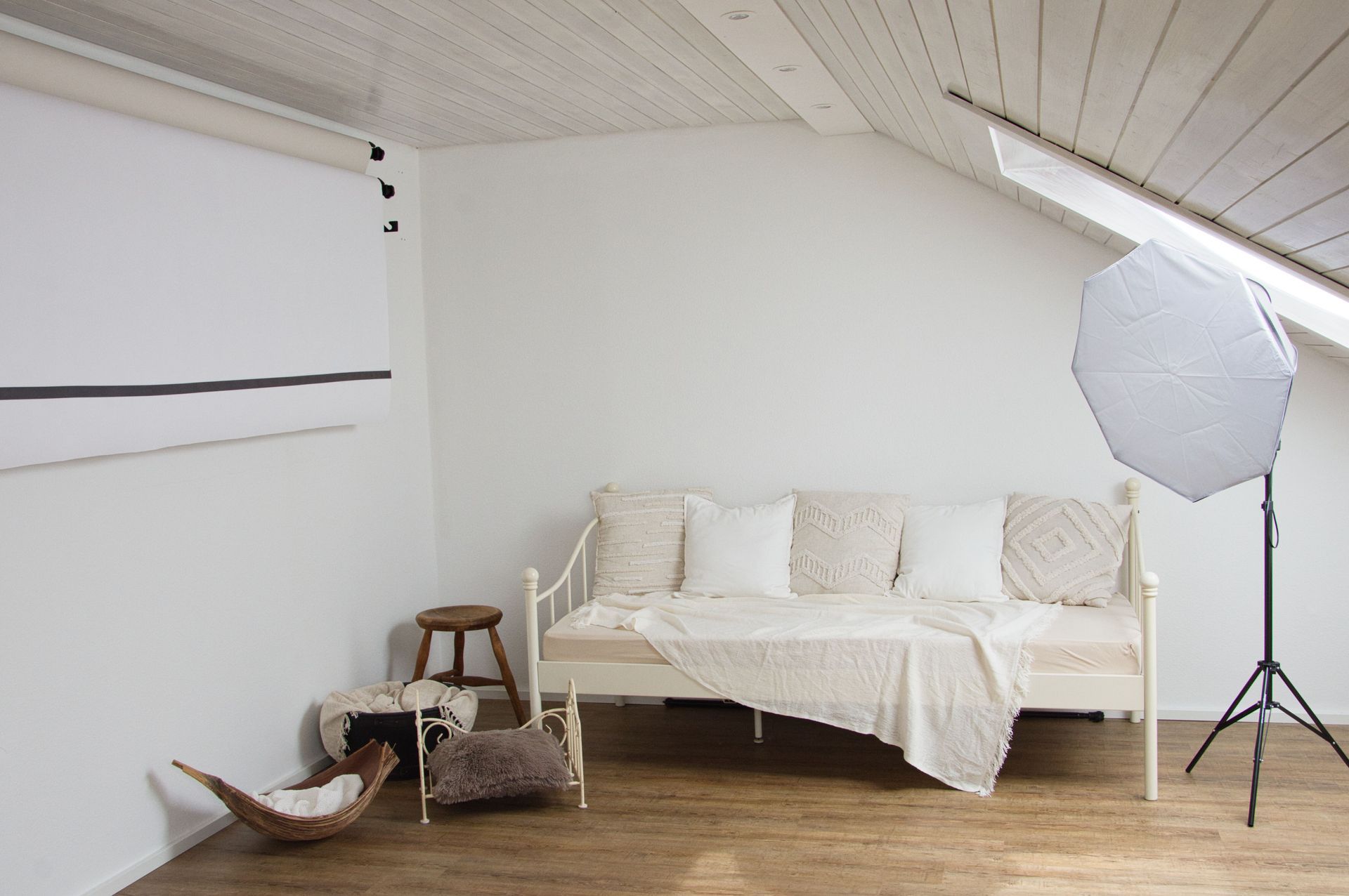 Sei es ganz schlicht vor einem neutralen Hintergrund, vor einer Holzwand, am Fenster oder kuschelig auf einem Tagesbett.